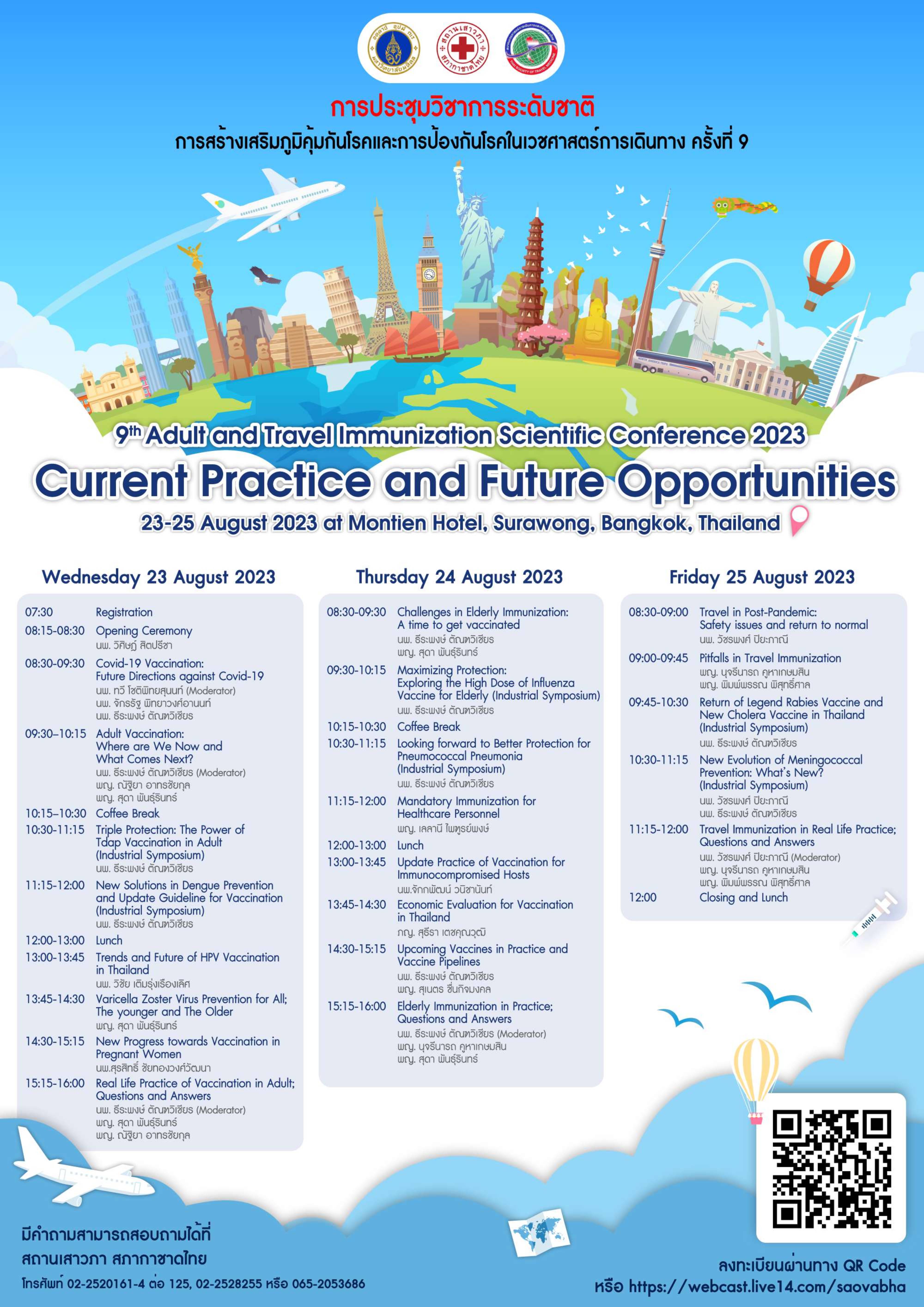 การประชุมวิชาการระดับชาติ การสร้างเสริมภูมิคุ้มกันโรคและการป้องกันโรคในเวชศาสตร์การเดินทาง ครั้งที่ 9 วันที่ 23-25 สิงหาคม 2566